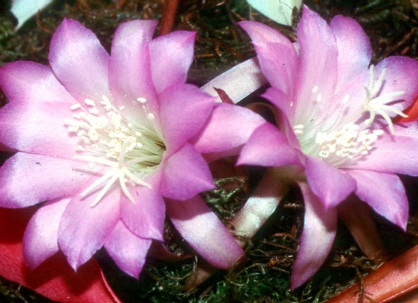 hell pink-lavendel, außen gelbbraun mit lavendel getönt |