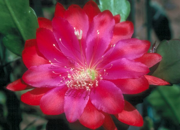 zinnoberrot mit purpur Rändern, äußere Petalen rot |