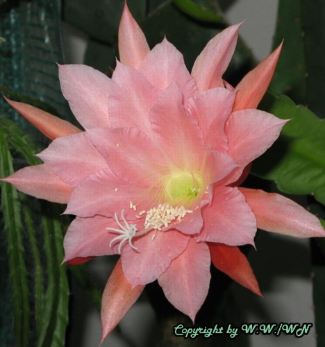 hellrosa mit dunklerem Mittelstreifen. Äussere Petalen rosa. |