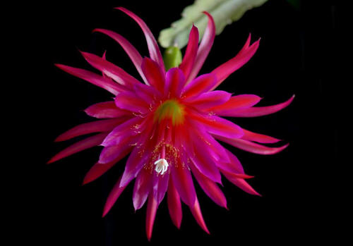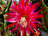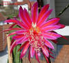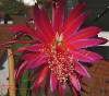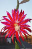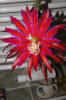 innere Petalen dunkel rötlich-orange mit magentafarbenen Rändern, äußere Petalen rot. |