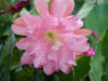 innere Petalen mittleres staubiges rosa, gekräuselt und gewellt. Nächste Reihe tief staubig rosa. Äussere Petalen tief orange-rosa. |
