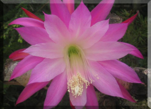 | Blüte: | purpur mit dunklerem Mittelstreifen, schmale weisse Schattierung vom Schlund aus |