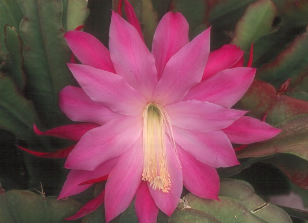 helles lavendel mit dunklerem Mittelstreifen, äußere Petalen purpurrot |
