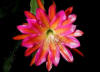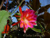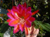 leuchtend orange mit fuchsia farbenen Rändern. Äussere Petalen scharlachrot. |