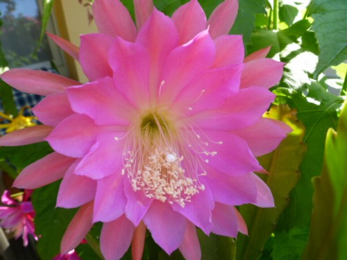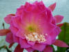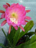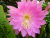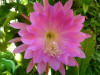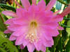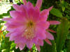 kirsch-rosa mit dunkleren Rändern und weissem Schlund. |