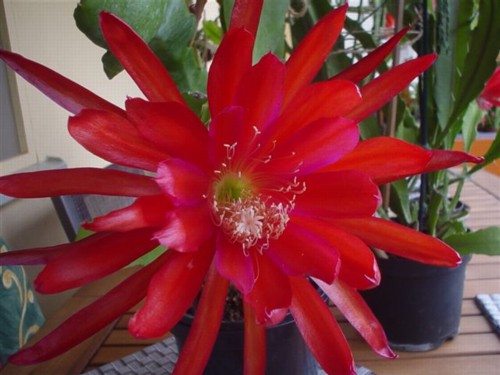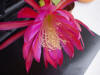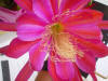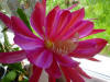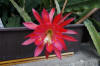 Blüte in Rotschattierungen. Innerste Petalen mit magenta Rändern |