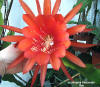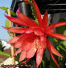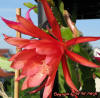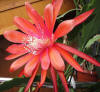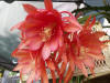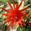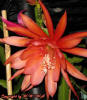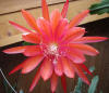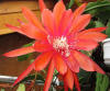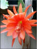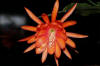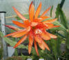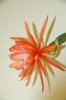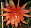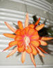 orange mit dunklerem Mittelstreifen, breite und runde Petalen, äußere Petalen schmal, sternförmig |