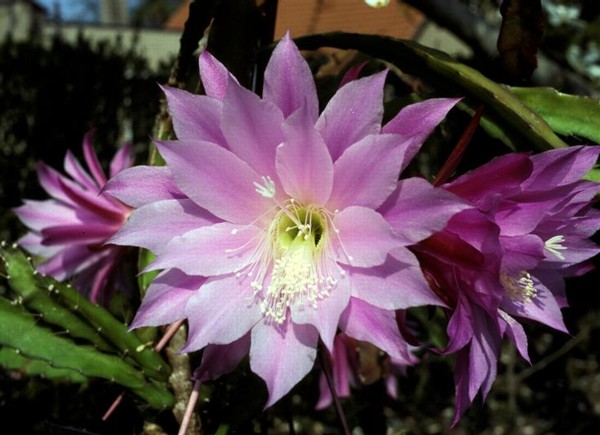 innere Petalen matt violett-rot mit dunklerem Mittelstreifen. Äussere Petalen dunkel violett-rot. |