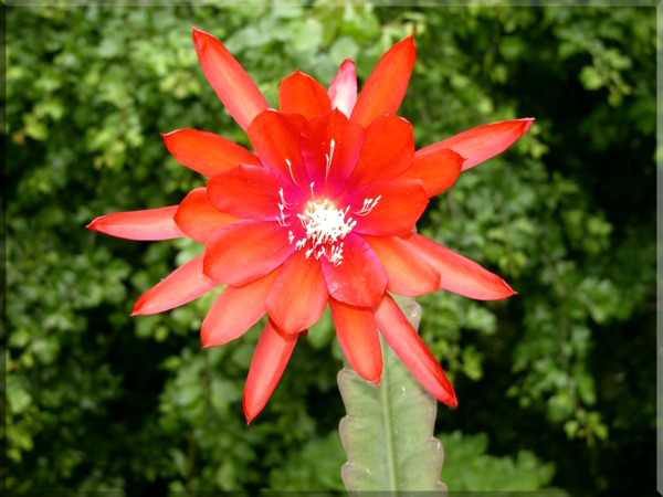 orange-rot mit orangem Mittelstreifen und violettem Schlund |