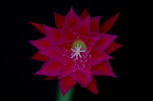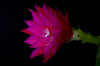 innere Petalen rot mit lachsrotem Schlund und purpurroten Rändern. Äussere Petalen lachsrot mit purpurroten Rändern. |