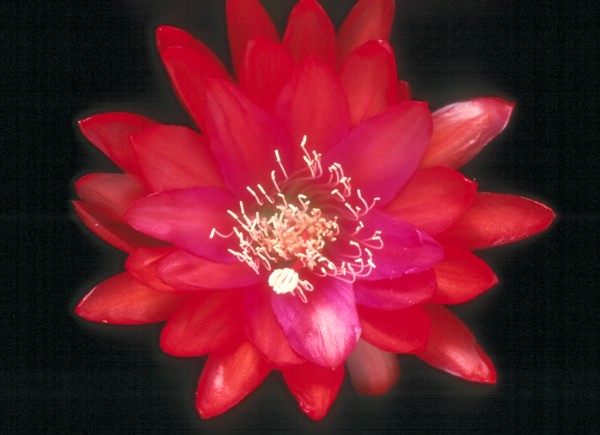 magenta mit roten Rändern, 2.Reihe magenta Zentrum mit rot bis orange, 3.Reihe orange mit roten Rändern, außen wie die 3.Reihe |