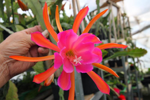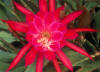 innere Petalen dunkel kirschrot mit karmin getönt, nächste Reihe karmin mit kirschroten Rändern, äußere Petalen orange-rot mit zart karmin Rändern |