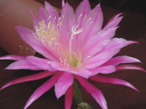 magenta-purpur mit rot-orangem Mittelstreifen, äußere Petalen rot mit purpur Rändern |