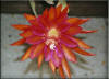 rötlich orange mit magenta Rändern, äußere Petalen beige-orange mit rotorangen Rändern |