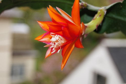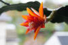 innere Petalen gelborange mit purpur Rändern. Äussere Petalen orangegelb bis korallenrot. |