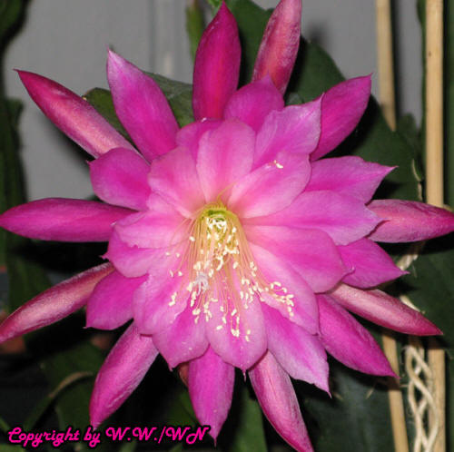 dunkel purpur mit helleren Rändern. Äussere Petalen purpur rot. |