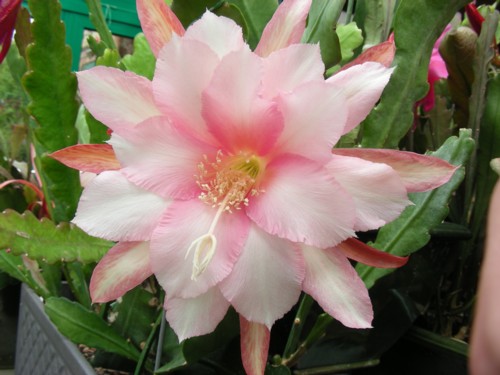 innere Petalen pink mit weißem Zentrum, äußere Petalen gold-orange mit goldfarbenem Zentrum |