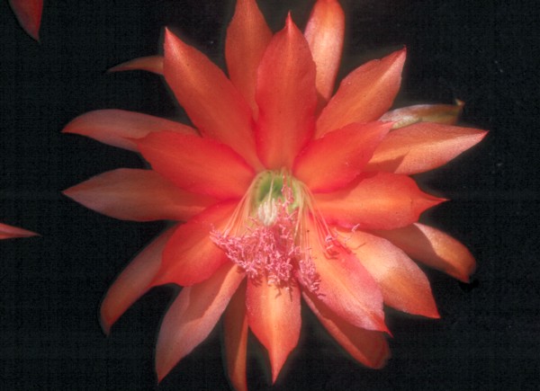 kapuzinerkressen-orange mit grenadin-roten Rändern, äußere Petalen fuchsien-orange mit hell orangem Mittelstreifen |
