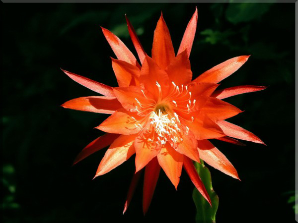 Khakiorange, dunklere Ränder. Äussere Petalen rostig orange. |