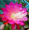 karminfarbene Blüte mit orangem Mittel-streifen |