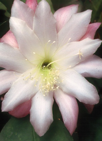 weiß mit pink, nächste Reihe fahl malvenfarben und die nächste Reihe einen Schatten dunkler, äußere Petalen lavendel-malvenfarben |
