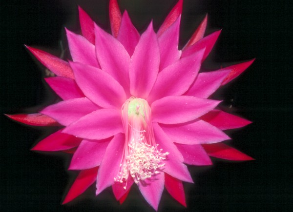 dunkles rot mit orangem Mittelstreifen und purpur Rändern |