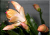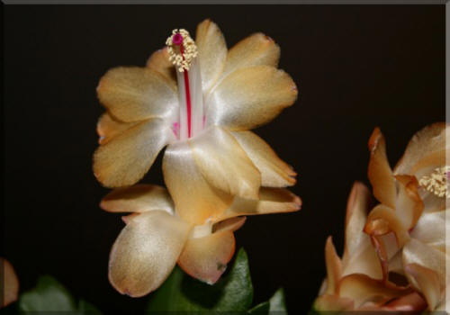 die erste gelblich-weiße Blüte mit einem deutlich gelben Rand |